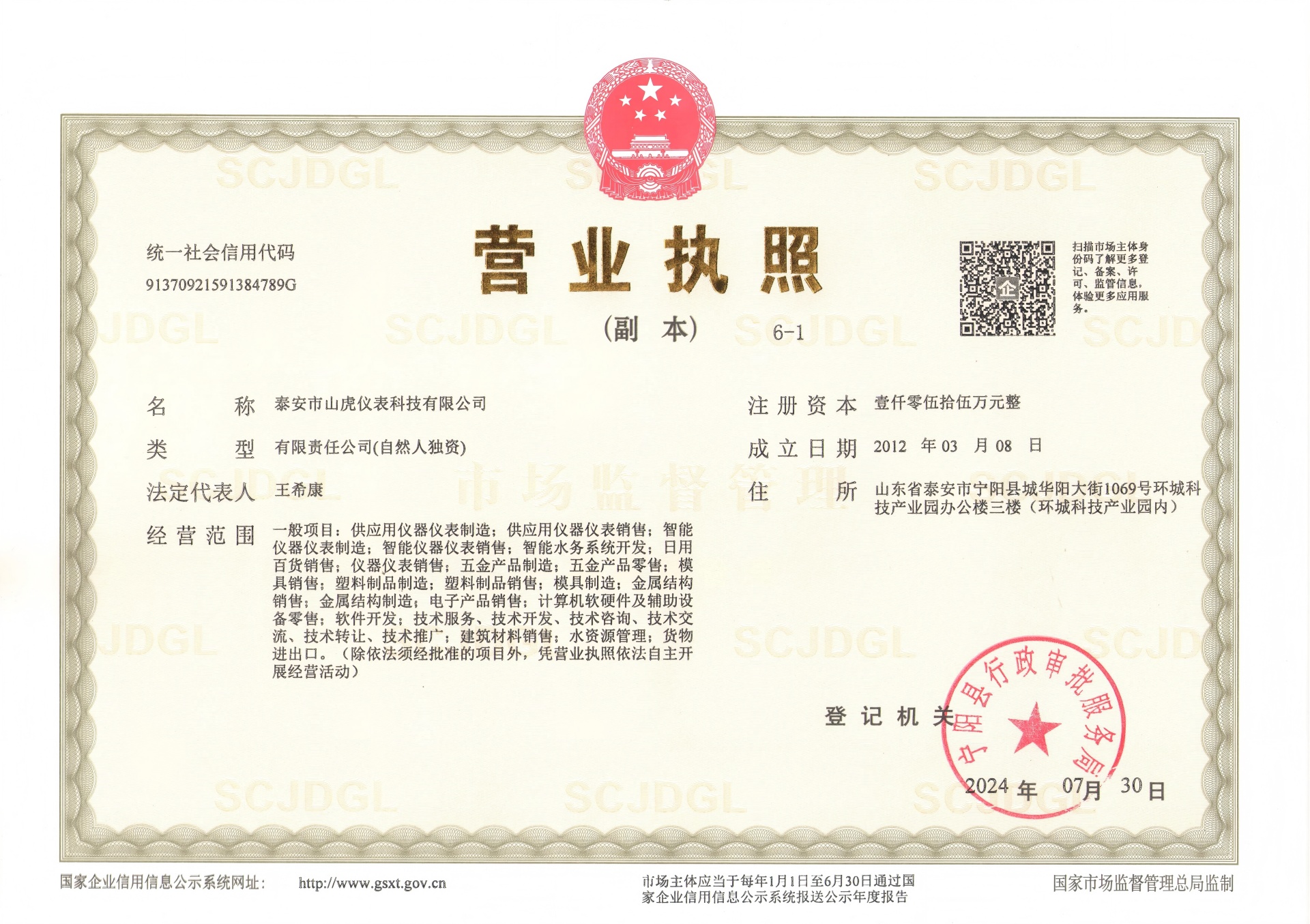 一、前言泰安市山虎儀表科技有限公司在本報(bào)告中,客觀(guān)、真實(shí)、公正的公布了質(zhì)量信用信息,基于此,我們歡迎社會(huì)公眾對(duì)我們公布的內(nèi)容監(jiān)督,提出意見(jiàn)和建議。本報(bào)告時(shí)間范圍:2022年1月---2022年12月,以1年為周期,根據(jù)實(shí)際